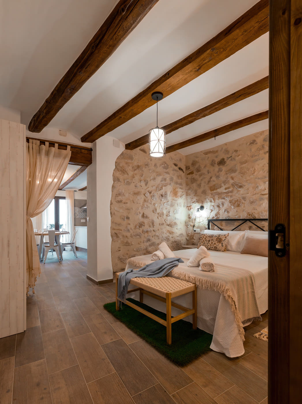 Inspirada en una emblemática cueva local, esta estancia acogedora, y con encanto tiene un ambiente cálido y tranquilo, ideal para desconectar. Este apartamento turístico está en la primera planta de la Casa Rural,