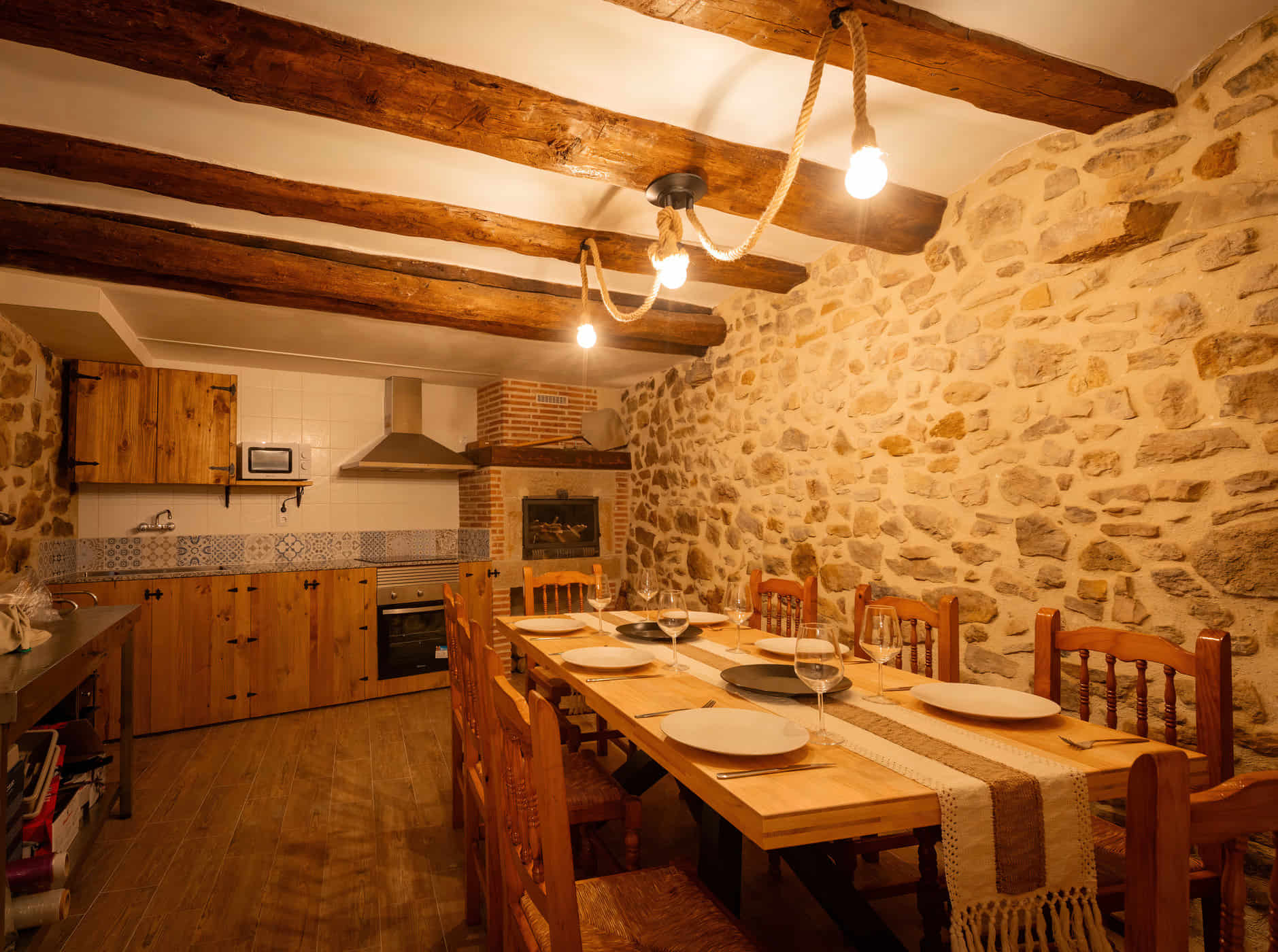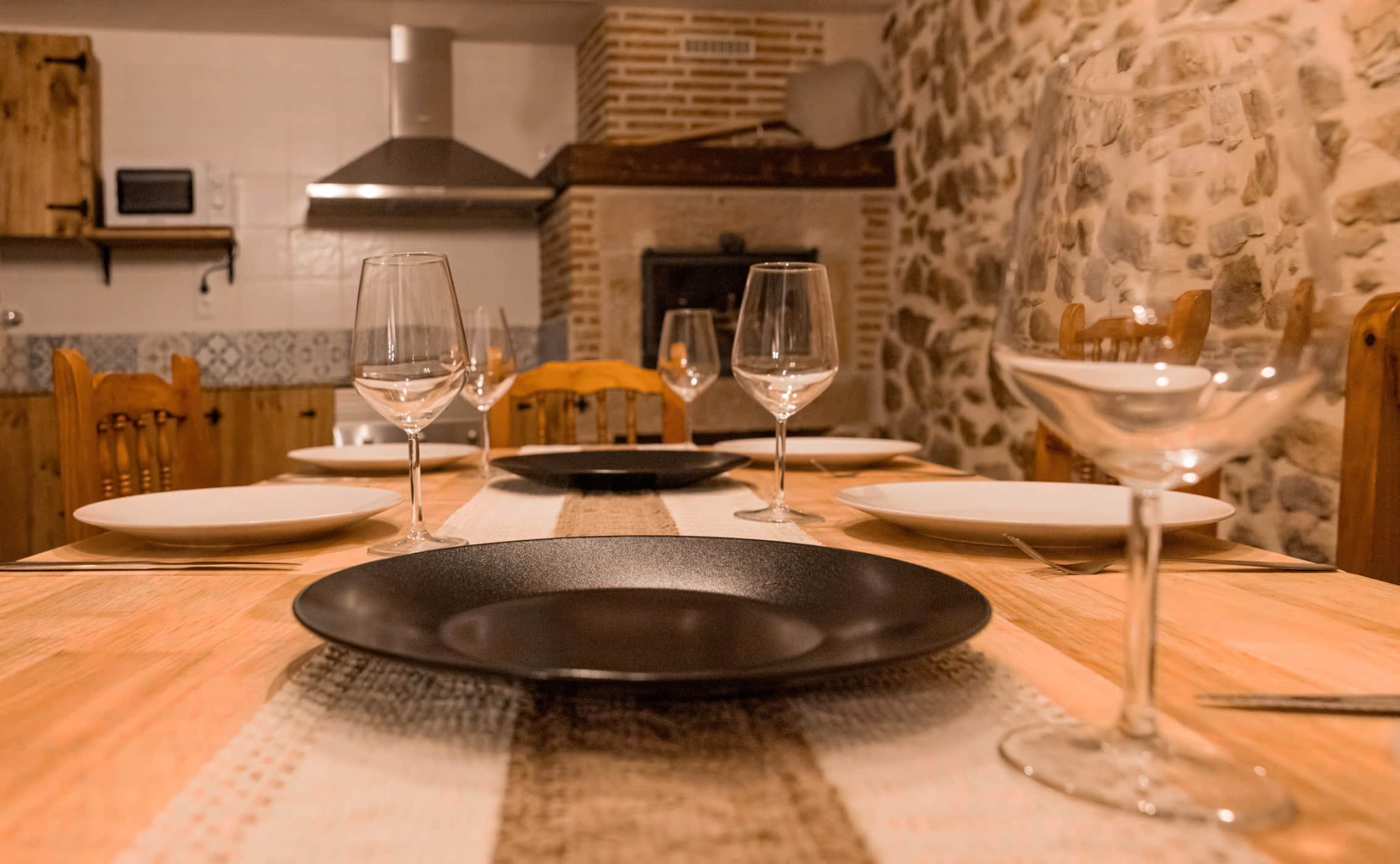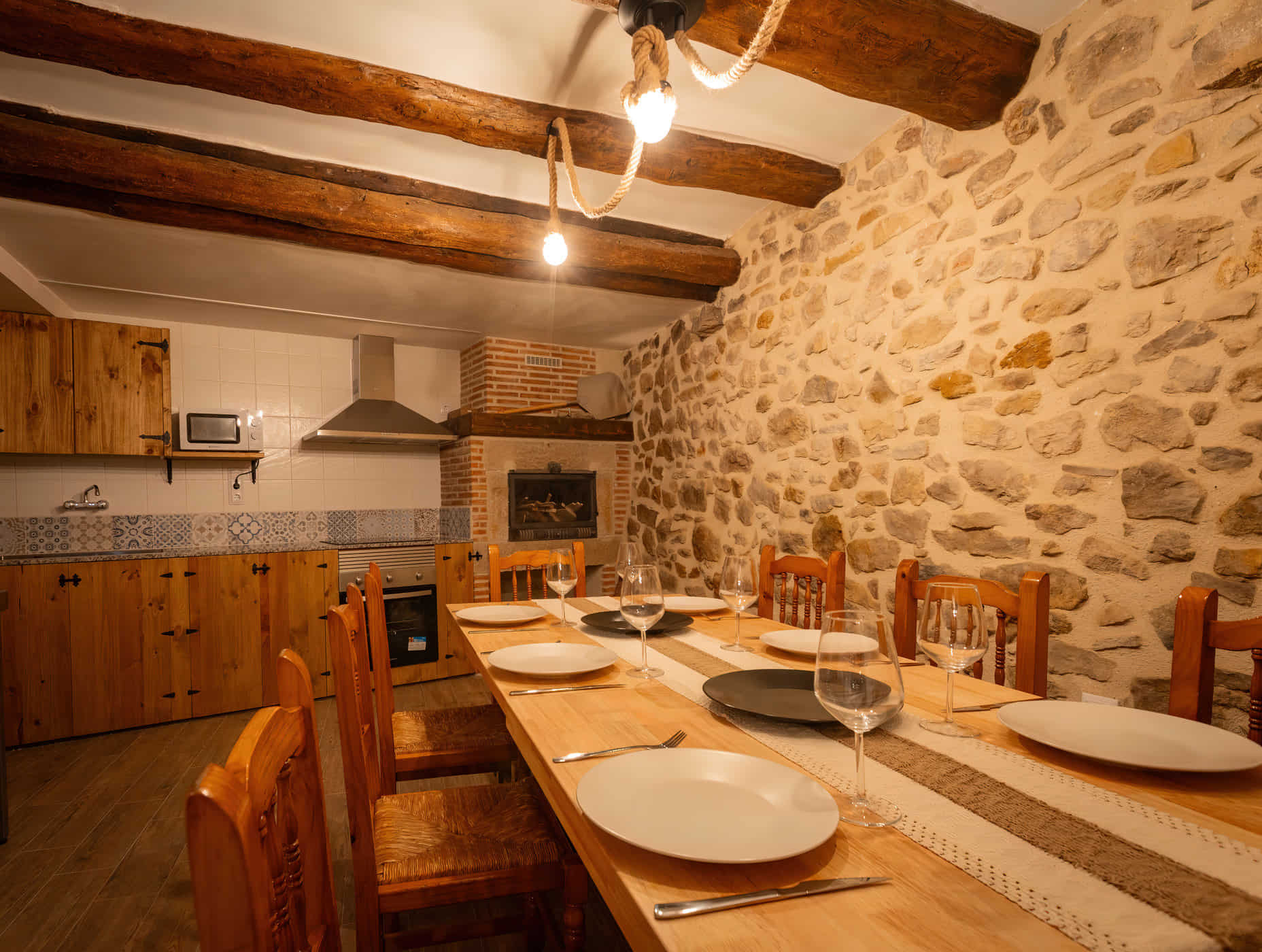 El servicio, disponible bajo reserva, se realiza en la zona común del comedor, equipada con un horno moruno tradicional. El espacio es de uso exclusivo por los anfitriones, quienes preparan desayunos y cenas caseras para los huéspedes alojados.