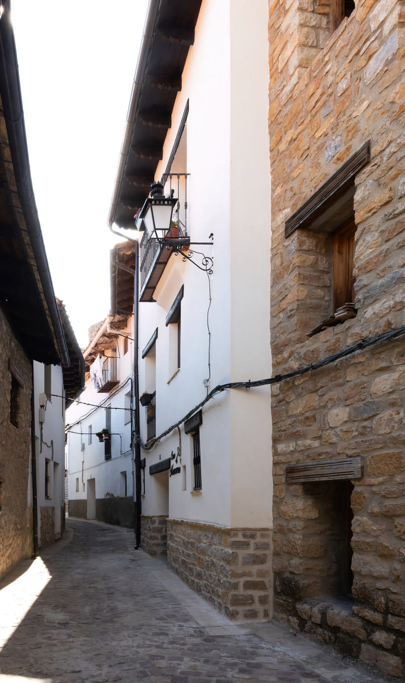 La entrada de la Casa Rural Masovera se encuentra en una calle peatonal y muy tranquila de Linares de Mora, lo que la convierte en un entorno ideal para que los más pequeños pueden moverse y jugar con total seguridad, sin peligro de tráfico, ni ruidos.